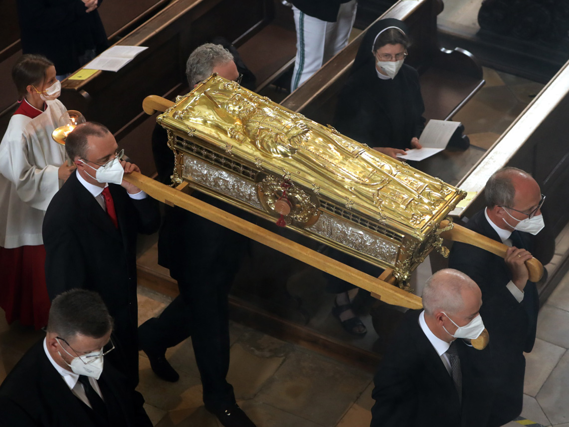 Reponiert wird der Ulrichsschrein seitens der Pfarrei St. Ulrich und Afra während eines Gottesdienstes am Sonntag, 11. Juli um 18.00 Uhr. Eine vorherige Anmeldung im Pfarrbüro ist auch für diesen Gottesdienst nötig.