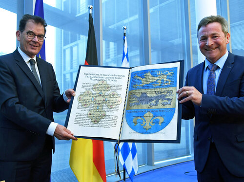 Bei der Preisverleihung betonte der Vorsitzende der Stiftung, Landrat Leo Schrell, dass die Flüchtlingssituation, der Klimawandel und die Corona-Pandemie drei drängende Gegenwartsfragen seien, bei denen sich Europa schwertue, mit einer Zunge zu sprechen und die Probleme gemeinsam anzupacken und zu lösen. "Wenn wir uns den gegenwärtigen Zustand Europas betrachten, ist das Stiftungsziel Förderung der Einheit Europas in christlich-abendländischer Tradition aktueller denn je", betonte Schrell. Deshalb habe die Stiftung mit Dr. Gerd Müller einen herausragenden Preisträger.