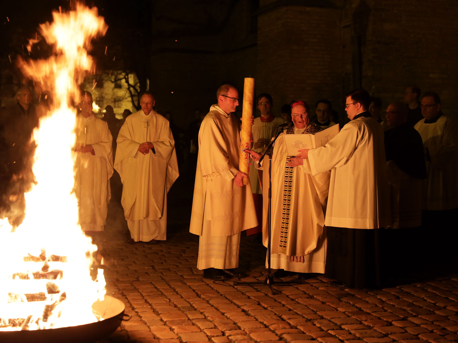 Bereits in der einhergehenden Osternacht am Karsamstag betonte der Bischof im trotz nächtlicher Dunkelheit von zahlreichen Kerzen hell erleuchteten Hohen Dom, dass es in der Kirche um mehr gehe als bloße Reformdiskussionen: „Niemand bezweifelt die Notwendigkeit, die Steine so ins Rollen zu bringen, dass längst fällige und aufgestaute Reformen endlich auf den Weg kommen – auch in der Kirche.“ Doch das Christentum habe noch mehr anzubieten als die Steine der Reform – es sei der Stein von Ostern, der den Weg freigemacht habe für eine Veränderung der ganzen Welt.