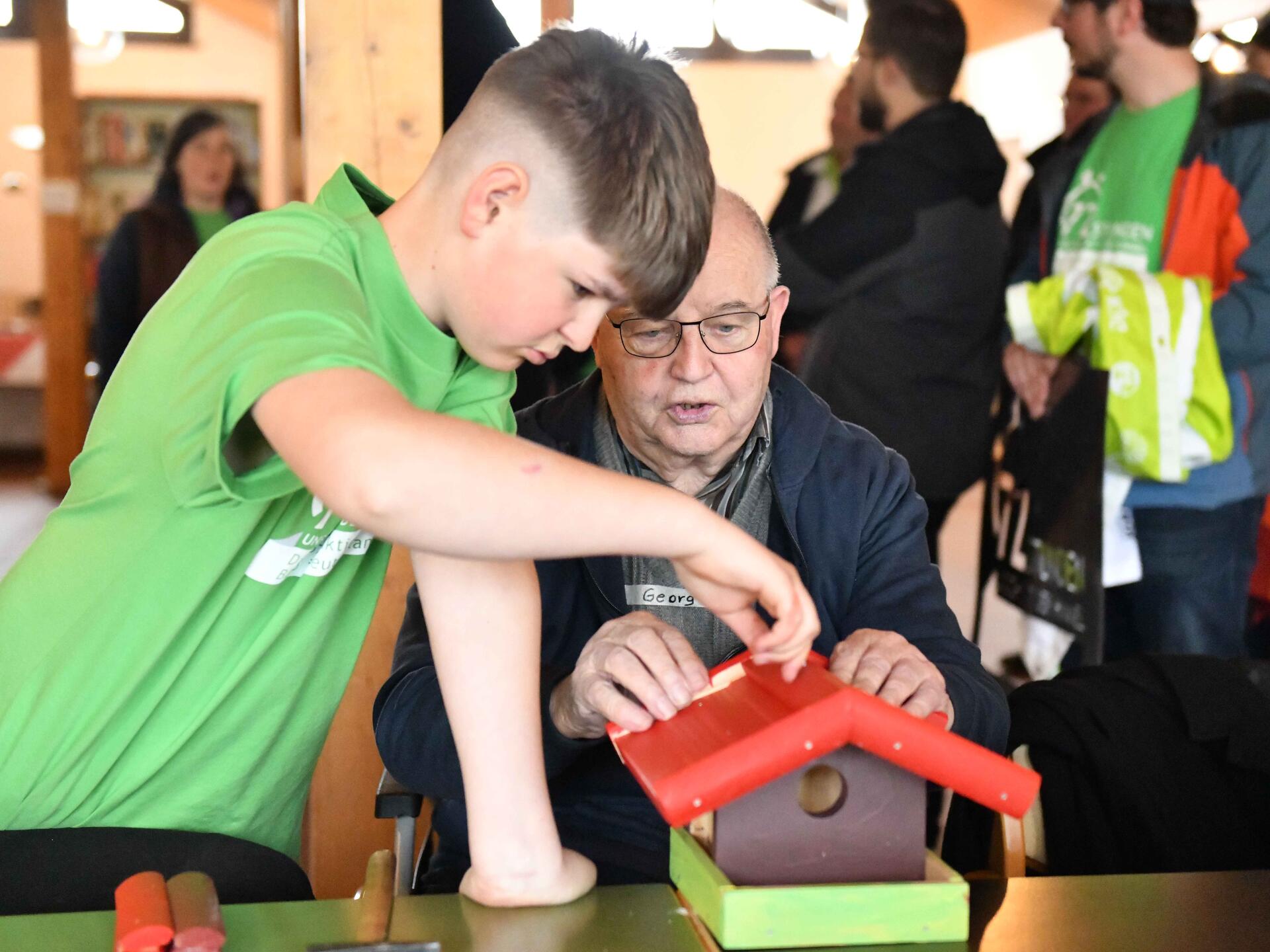 Einen generationenübergreifenden Akzent wollte dagegen die Pfarrjugend der Pfarreiengemeinschaft Haunstetten bei der diesjährigen 72-Stunden-Aktion setzen. Gemeinsam mit den Bewohnerinnen und Bewohnern des örtlichen „Senioren Wohnens“ verschönerten sie deshalb den Garten der Wohnanlage. Neben einem Hochbeet bastelten sie an einem Vogelkasten, gestalteten Kunstblumen für Vasenschmuck, aßen und beteten zusammen. „Dass sich hier verschiedene Generationen treffen, sich gegenseitig bereichern und Freude teilen, ist einfach sehr schön“, freute sich Weihbischof Florian Wörner über das gelungene Miteinander von Jung und Alt.