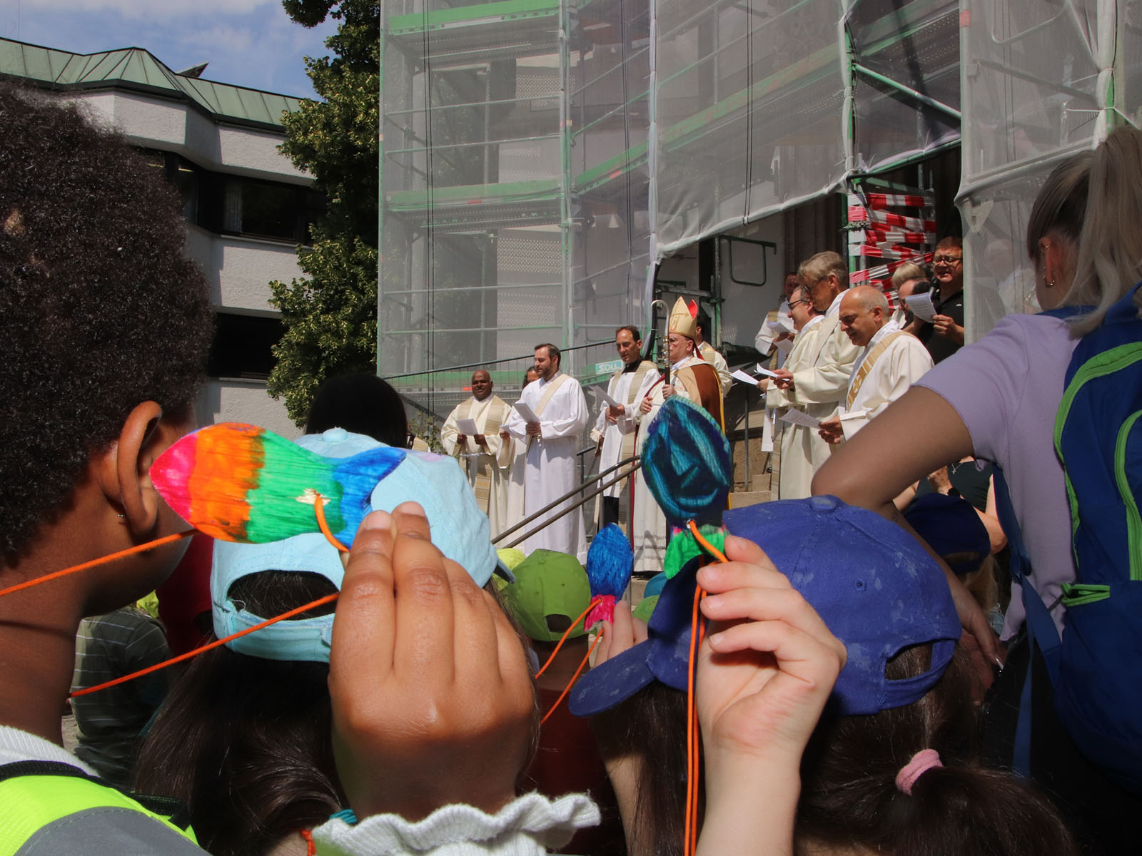 Die Kinder trugen alle einen Fisch aus Holz mit einer Schnur um ihren Hals – alle in vielfältiger Weise bunt bemalt. Die fünfjährige Lea wusste warum. „Der heilige Ulrich hat den Fisch armen Menschen gegeben.“ Kinder, so Kitzberger, bekämen alles mit, auch das mit dem Krieg in der Ukraine und im Nahen Osten und den vielen Katastrophen. „Da ist es gut für die Kinder, dass sie wissen, dass es immer wieder sehr gute Menschen gibt, die anderen Menschen in Hunger und Not helfen.“