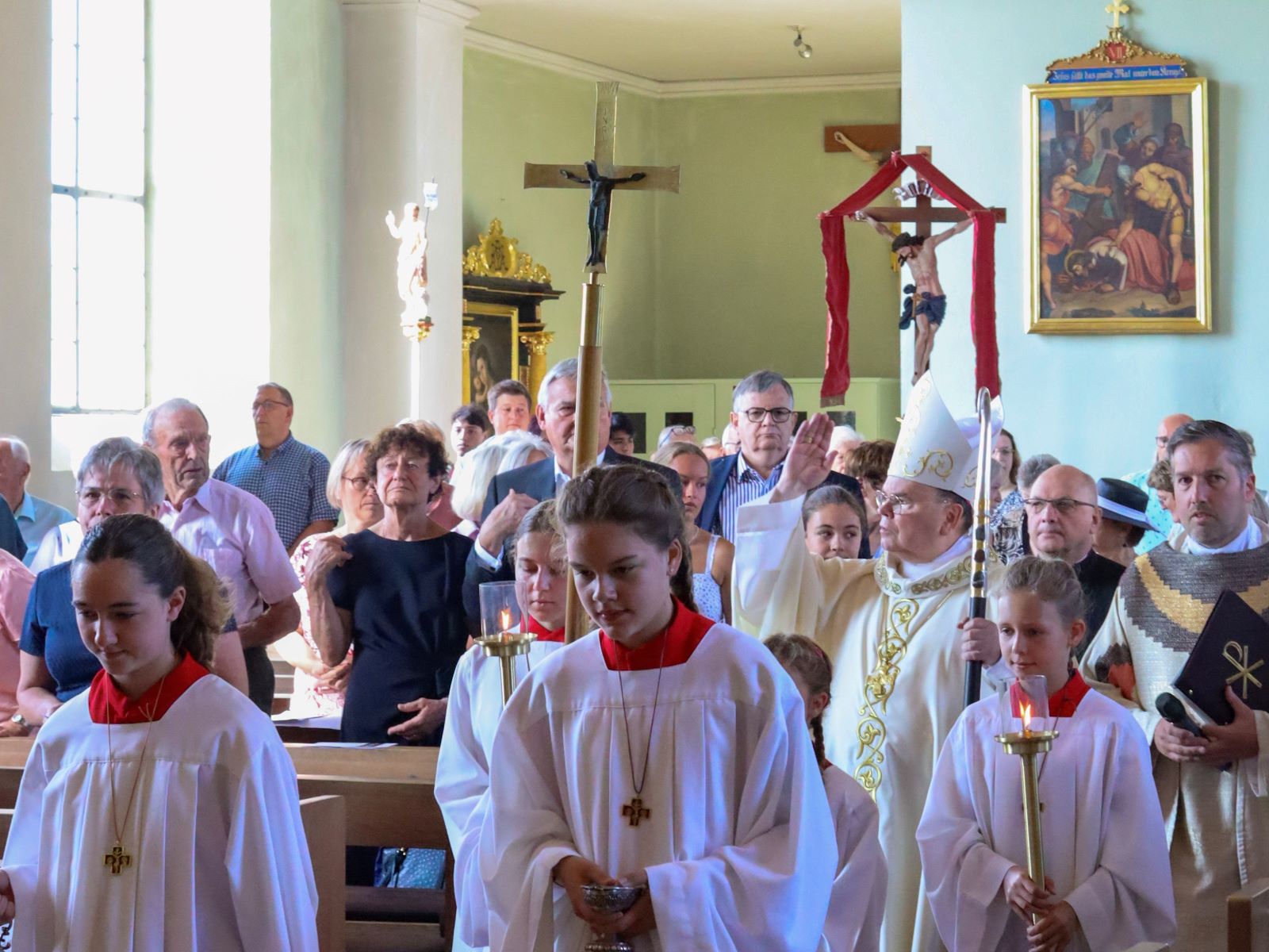 Der Pontifikalgottesdienst war der feierliche Abschluss einer Festzeit, die bereits am 22. August, also am Tag der eigentlichen Kirchweih, mit einer Vesper eingeleitet wurde. Im Anschluss an den Festgottesdienst kamen die zahlreichen Besucherinnen und Besucher noch im Gemeindezentrum zusammen und einer Aufführung des katholischen Ortskindergartens St. Johannes beizuwohnen.