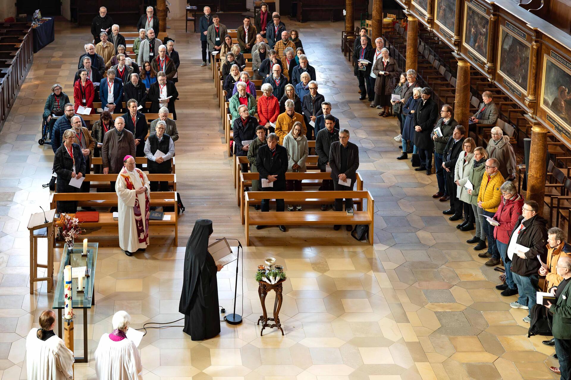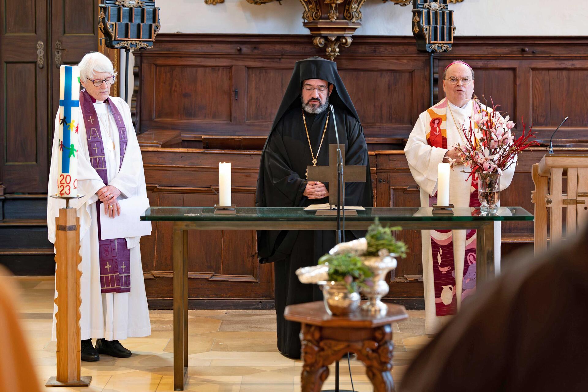 Zu den Gesprächspartnern in diesen drei Tagen gehören hohe Geistliche sowie Theologen und Theologinnen verschiedener christlicher Kirchen. Beteiligt sind neben Bischof Bertram unter anderem der griechisch-orthodoxe Vikarbischof Emmanuel Christoupolis aus Berlin, die emeritierte lutherische Erzbischöfin von Uppsala, Antje Jackelén, und der Vorsitzende des Zentralausschusses beim Weltkirchenrat, Heinrich Bedford-Strohm. Zu Gast sind auch die Präses der EKD-Synode, Anna-Nicole Heinrich, und die ehemalige Vorsitzende der Deutschen Ordensobernkonferenz, die Franziskanerin Katharina Kluitmann. Den zentralen Vortrag hält die Tübinger Dogmatikerin Johanna Rahner.