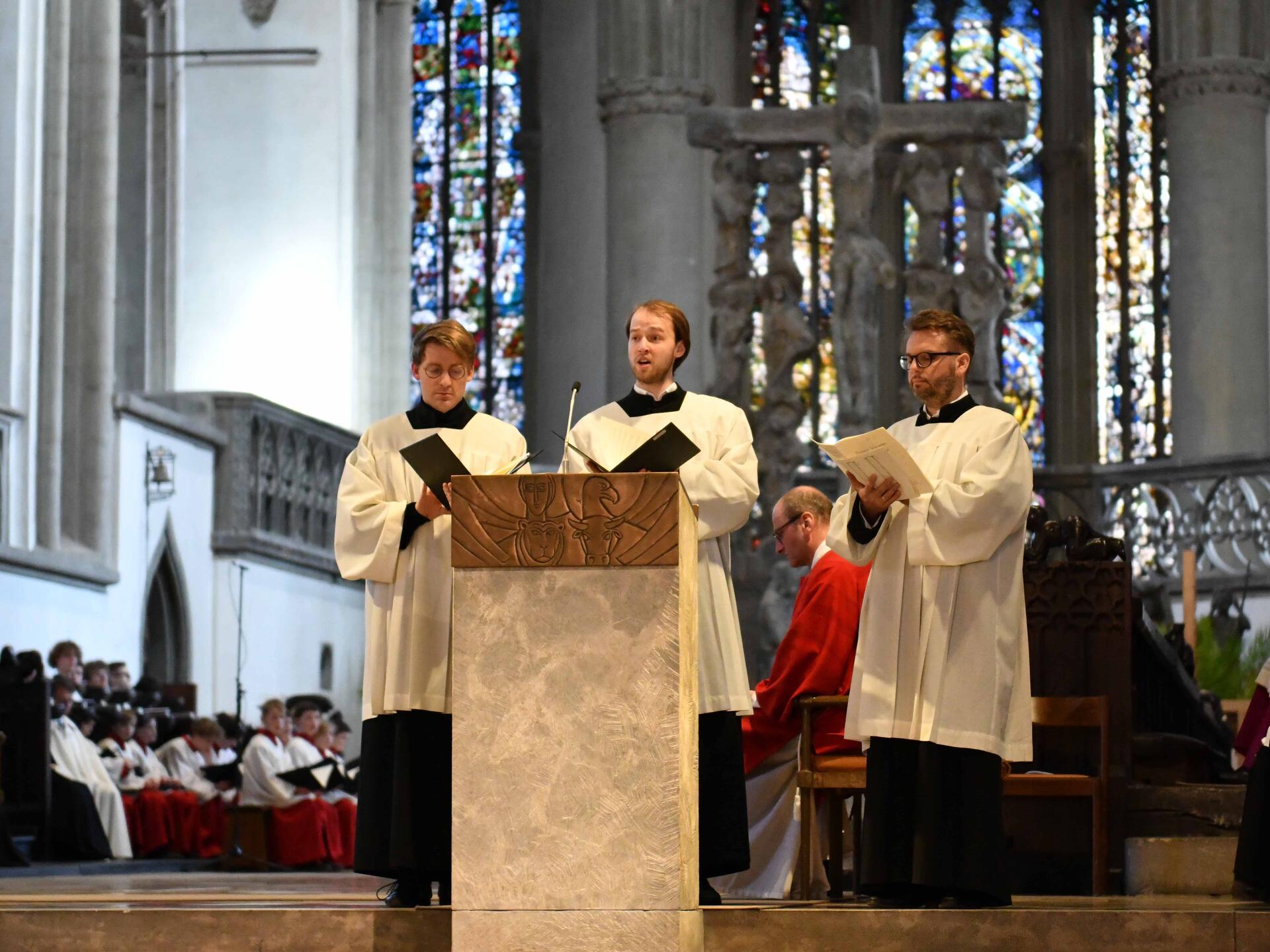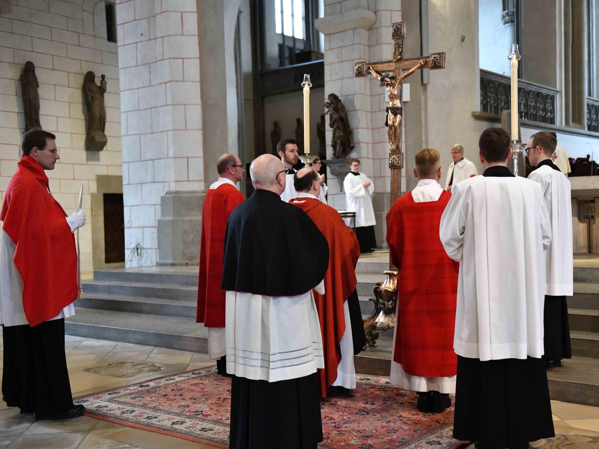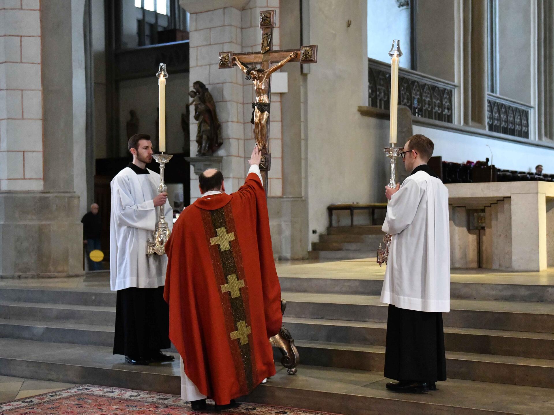Musikalisch gestaltet wurde die Karfreitagsliturgie vom Kammerchor der Domsingknaben unter der Leitung von Domkapellmeister Stefan Steinemann sowie dem Domchor. Sie trugen die Johannespassion von Hermann Schroeder vor. Zudem wurden verschiedene Passionsmotetten gesungen.