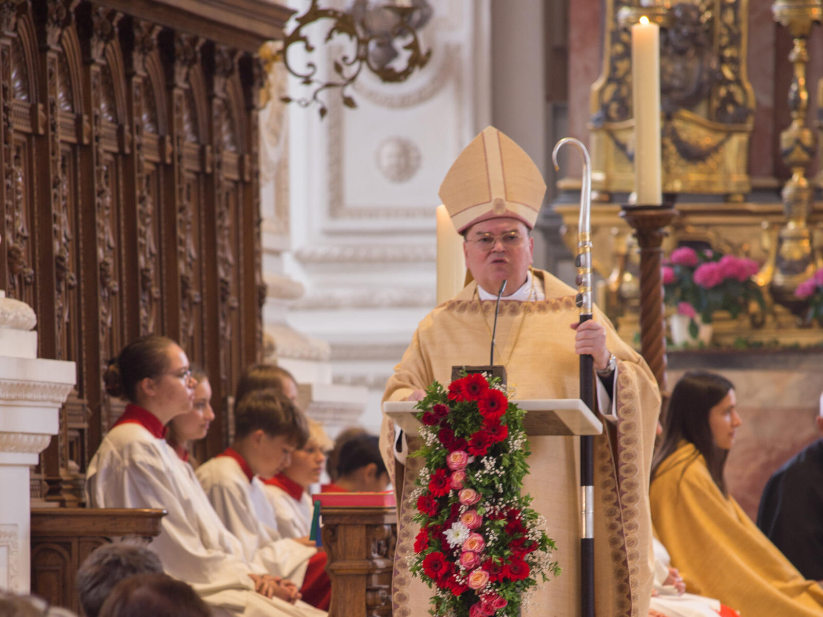 Hinter all den umgesetzten Ideen und Projekten hätten Menschen gestanden, die mit Begeisterung ihre Kompetenz, ihr historisches Wissen und ihre Empathie eingebracht hätten, um von ihrem vertrauensvollen Glauben an Jesus Christus zu zeugen. „IHM angehören und damit getragen werden von unzähligen Glaubenden“, gebe Geborgenheit und Kraft, um den eigenen Lebensweg zu bestehen, gerade auch in dieser von Umweltkatastrophen und Kriegen geprägten Zeit, betonte Bischof Bertram. Gleichzeitig aber verschwieg er auch das Mitleid und die Verachtung nicht, die vielen Menschen aufgrund ihres christlichen Glaubens und bewussten Verbleibens in der kirchlichen Gemeinschaft entgegengebracht werde. Hier gelte es Standhaftigkeit zu beweisen, verwies er noch einmal auf den heiligen Ulrich, der sich auch in scheinbar auswegloser Situation nicht entmutigen ließ.