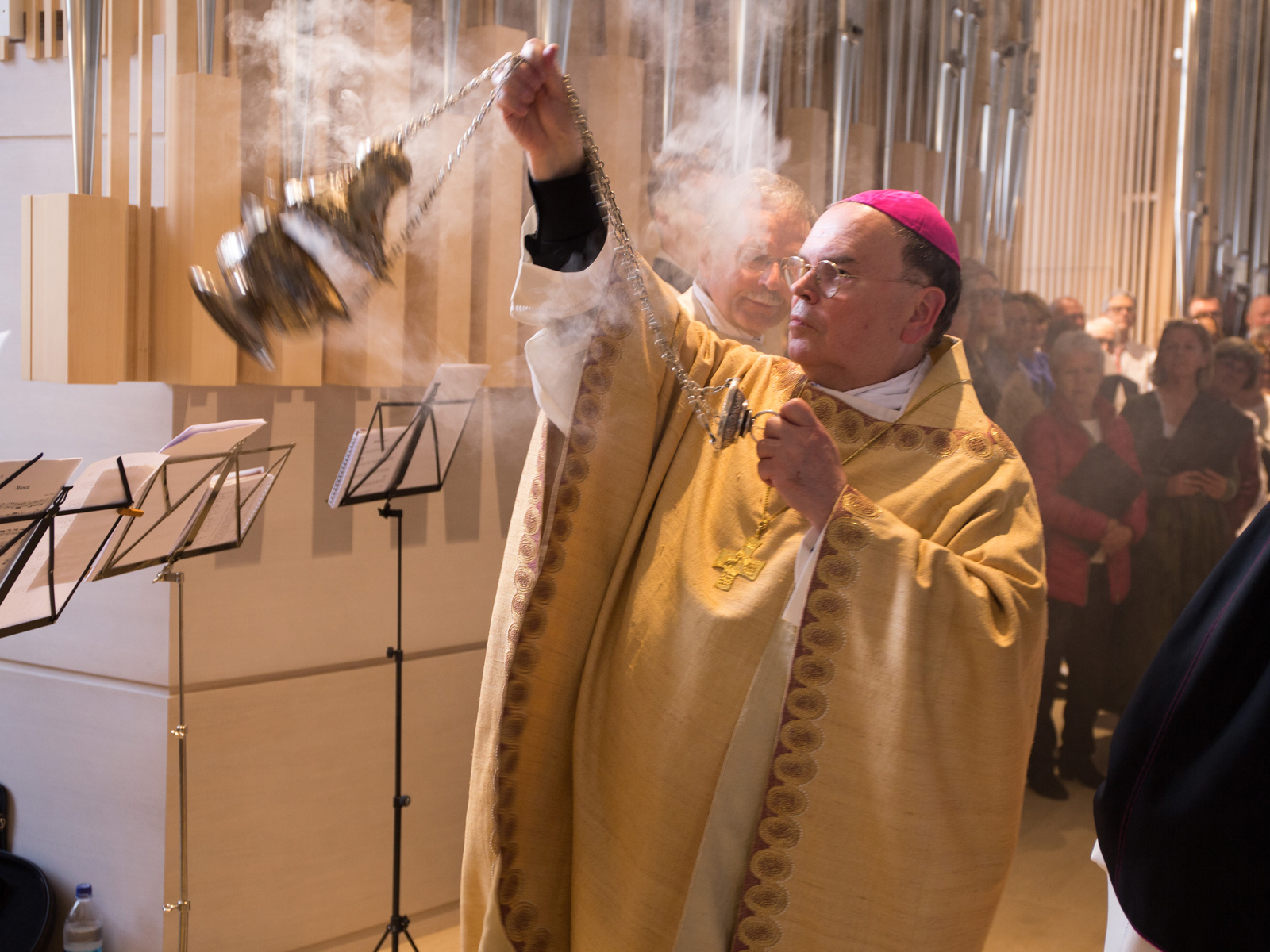 „Auf diesen Tag haben viele von Ihnen gewartet und sich wie alle Verantwortlichen und Musiksachverständigen schon lange vorbereitet: Heute dürfen wir das beeindruckende Gemeinschaftsprojekt, die neue Orgel, dem Segen Gottes anempfehlen“, richtete sich Bischof Bertram in seiner Predigt mit großer Anerkennung an die Gläubigen und Unterstützer des Projekts: „Ich schließe mich dem Dank, den Pfarrer Birkle soeben ausgesprochen hat, aus ganzem Herzen an und sage allen herzlich Vergelt’s Gott, die mit Geduld und Beharrlichkeit Zeit, Kompetenz und enorme finanzielle Mittel eingesetzt haben, um das Vorhaben zum Ziel zu führen.“ Als eine der größten Orgeln im Bistum Augsburg finde das Lob Gottes durch die Musik von nun an zu einem neuen Höhepunkt, unterstrich der Bischof die besondere Bedeutung des Instruments.