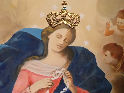 Papst Franziskus bringt dem Bild der Knotenlöserin seit vielen Jahren eine starke Wertschätzung entgegen. Bereits als Erzbischof von Buenos Aires hatte er die Verehrung der Knotenlöserin in Argentinien verbreitet. Das Gemälde zeigt die Madonna, die die Knoten eines weißen Bandes löst, welches von zwei Engeln gehalten wird. Biblische Szenen, die symbolisch auf Bilder der Hoffnung, der Barmherzigkeit und des Sieges über das Böse verweisen, umrahmen das zentrale Motiv.