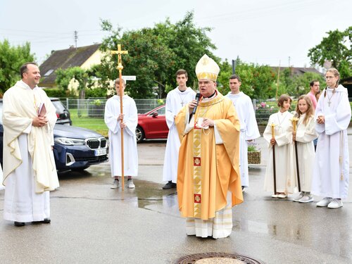 Bei einem Pontifikalamt im Freien zur Wiedereröffnung der Filialkirche St. Leonhard in Roth bei Pfaffenhofen hat Bischof Bertram die Gläubigen dazu aufgerufen, nicht auf der „Tourismusterrasse“ zu bleiben. Vielmehr gelte es, im Boot der Kirche und Vertrauen auf das „tragende Lebenswasser“, den Aufbruch zu wagen und in die stürmische See zu stechen. Dem scheidenden Pfarrer, Reinfried Rimmel, rief er für seine neuen Aufgaben in Augsburg „Schiff ahoi“ zu.