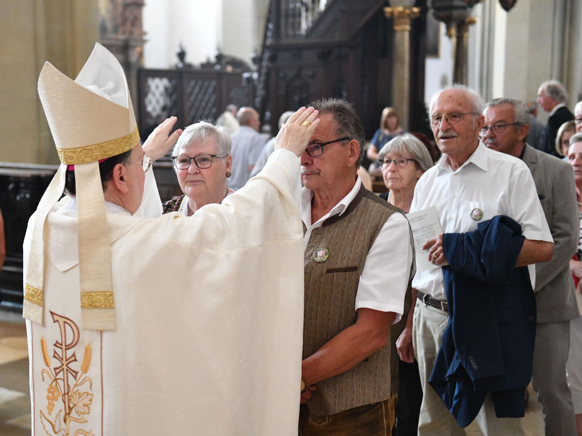 Bei einem feierlichen Gottesdienst mit Bischof Dr. Bertram Meier in der Basilika St. Ulrich und Afra haben an diesem Freitag 285 Ehepaare aus dem Bistum Augsburg, die bereits seit 50, 60 oder fast 70 Jahren verheiratet sind, auf ihre langjährige Liebe, Verbundenheit und Treue zurückgeblickt. Den Seniorinnen und Senioren bescheinigte Bischof Bertram dabei eine ganz besondere Rolle im Dienst der Glaubensbezeugung, in Kirche und Familien.