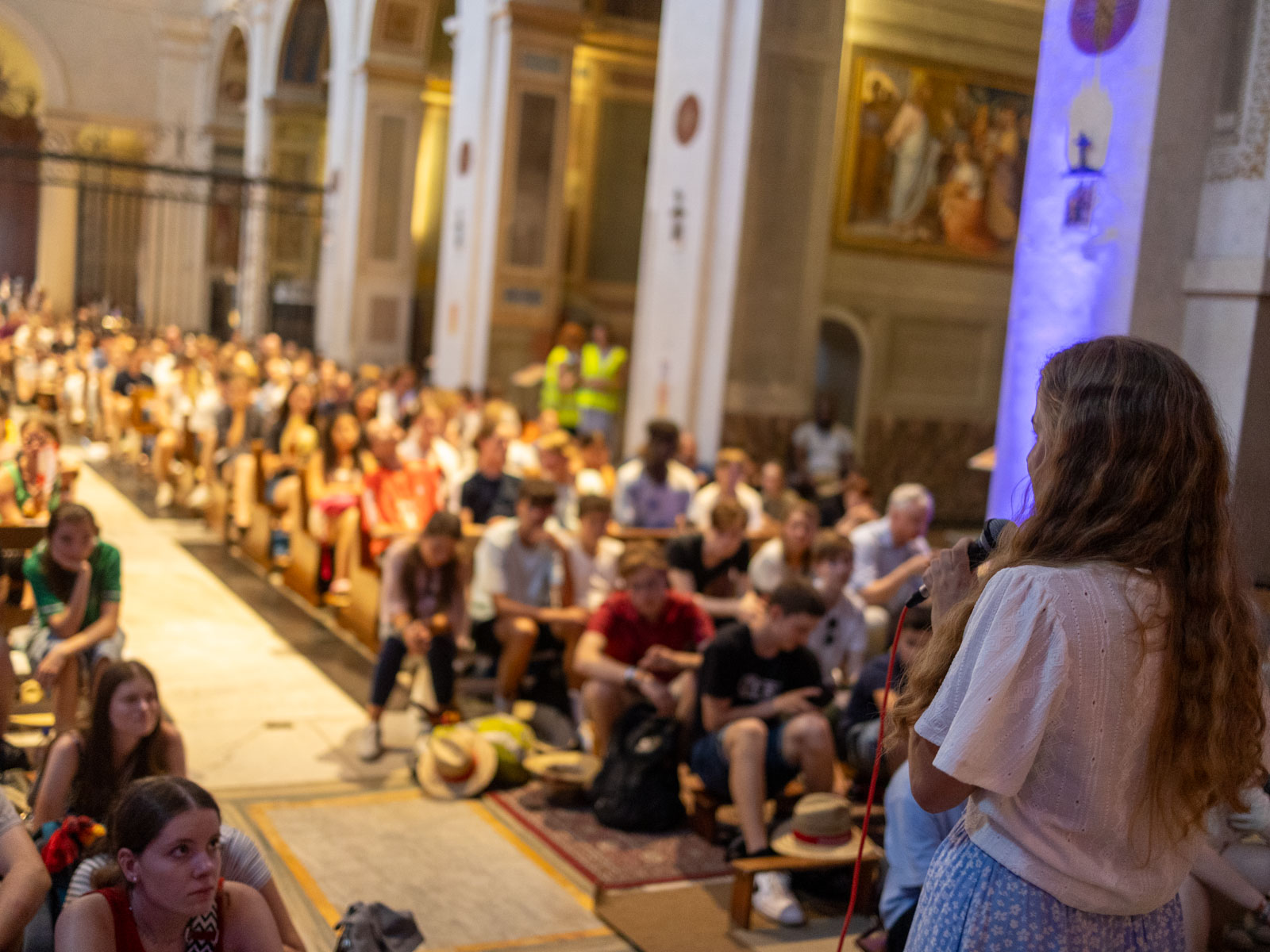 Und so fand der Abend dann auch mit dem Eucharistischen Segen sein Ende, den der Bischof den Ministrantinnen und Ministranten abschließend spendete. Die Kinder und Jugendlichen strömten daraufhin frisch bestärkt in die angenehme Kühle ihrer letzten römischen Nacht - und dürften damit auch bei den immer wieder in die Kirche hineinschauenden Touristen einen mächtigen Eindruck hinterlassen haben: von einer jungen Kirche und einem fröhlichen Glauben an den lebendigen Gott.